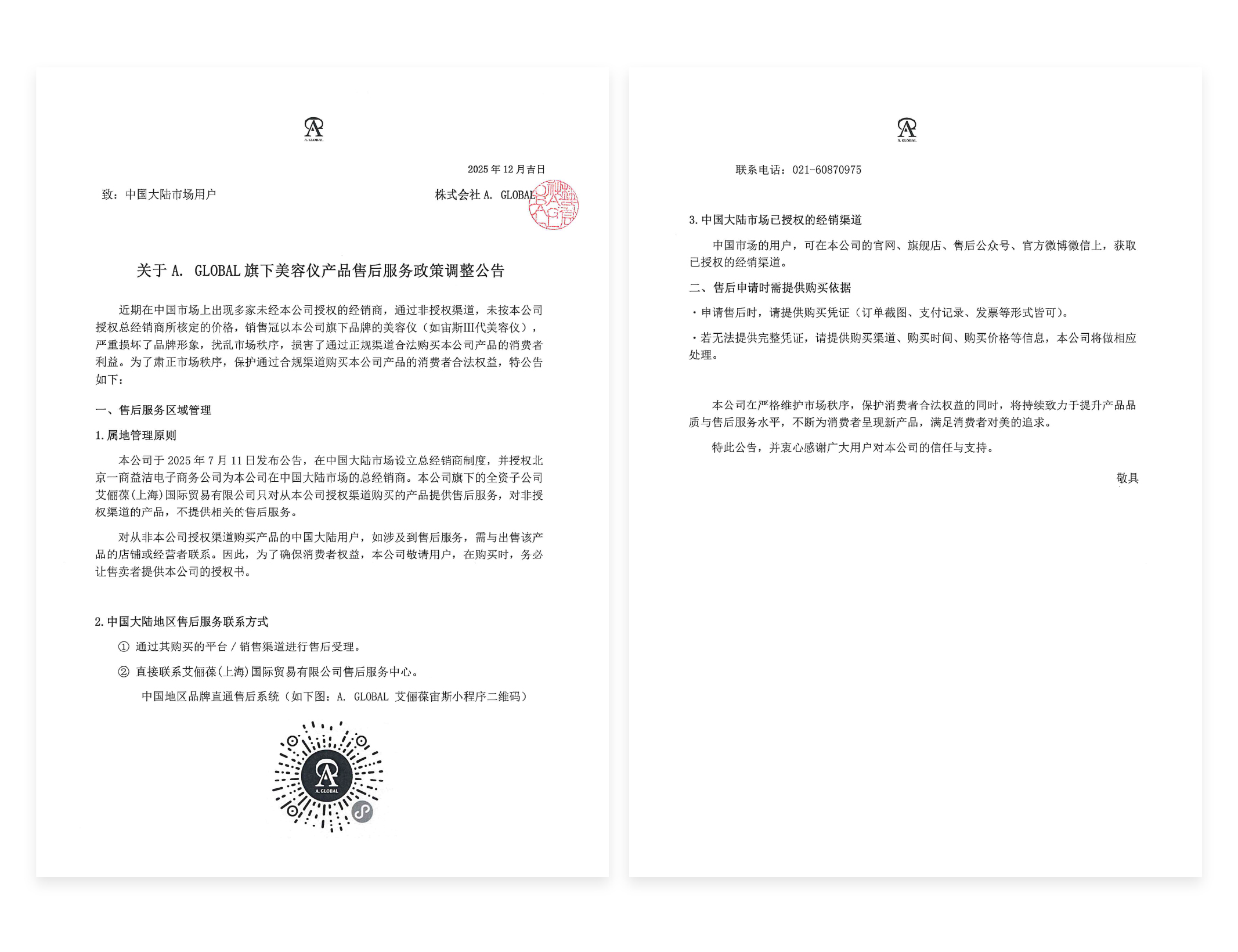 邀请您关注A. GLOBAL官方微信公众号,或扫描下方二维码关注,了解品牌及产品最新资讯。